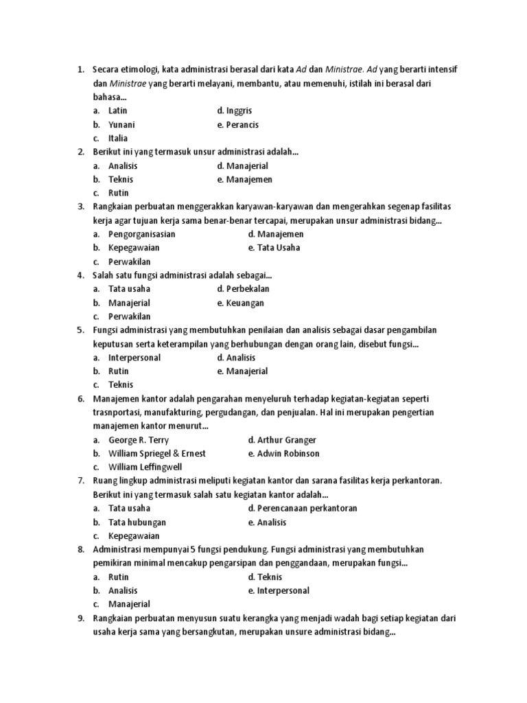 Soal semester ganjil tahun ajaran 2017/2018 mata pelajaran : Sep 30, 2020 · contoh soal pilihan ganda administrasi umum dan jawabannya. Soal uts pilihan ganda administrasi umum beserta jawaban. Pengertian administrasi secara luas adalah : Ini juga melatih logika siswa juga.